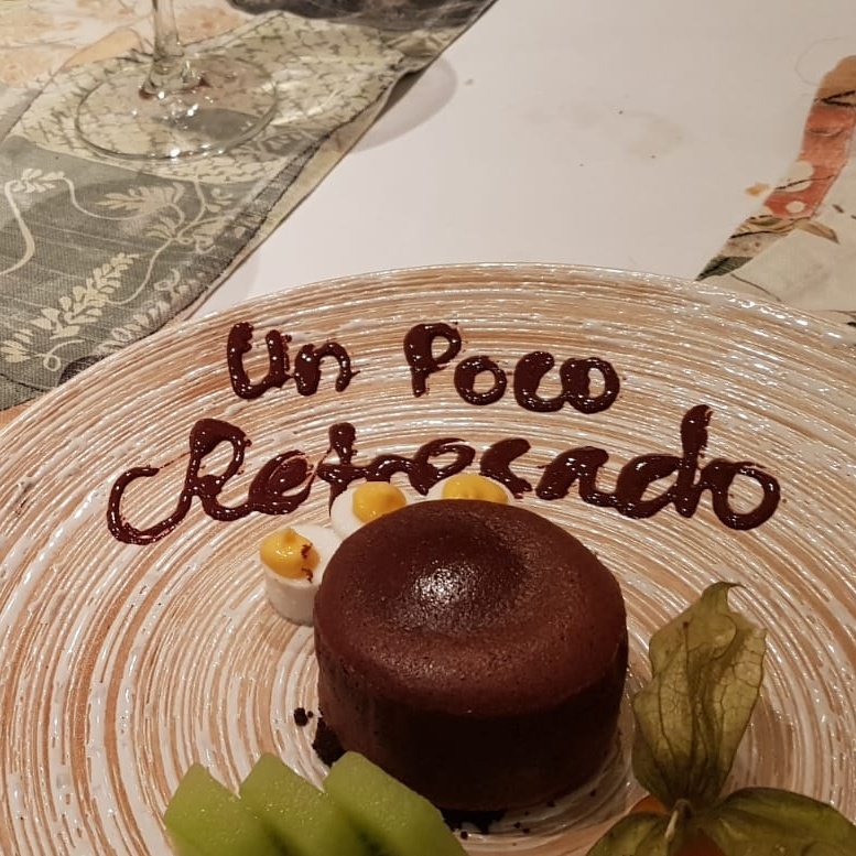 ni referencia, mi padre lee en voz alta la frase escrita en su plato junto a su coulant