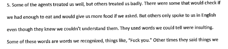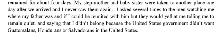 Several children said some of the guards at these facilities were cruel. One said they told her the U.S. government "didn't want Guatemalans, Hondurans or Salvadorans":