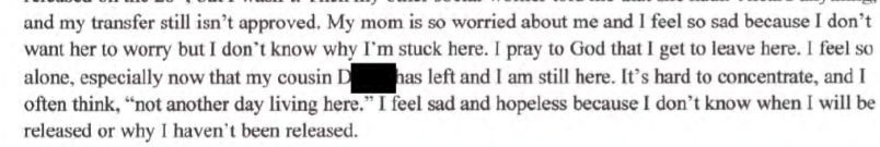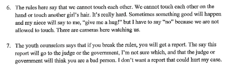 Some kids spoke fondly of classes and recreation time at the shelter (which the federal government now plans to strip away). But many felt alone, and longed to be released to family.