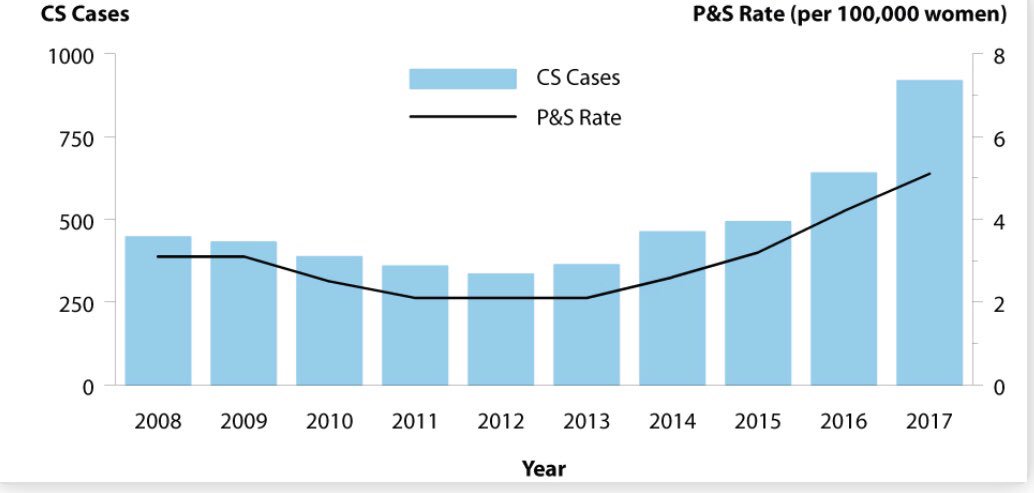(1/11) The correct answers are A (34%) & B (13%). Note case should’ve mentioned +confirmatory test. Cases of congenital syphils >doubled from 2013 (362 cases) to 2017 (918 cases), coincident w/ the rise in primary & secondary syphils rates among all women cdc.gov/std/stats17/sy…