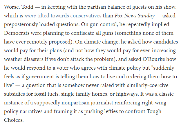 @CydEHargis "Todd — in keeping with the partisan balance of guests on his show, which is more tilted towards conservatives than Fox News Sunday — asked preposterously loaded questions." theweek.com/articles/84954…