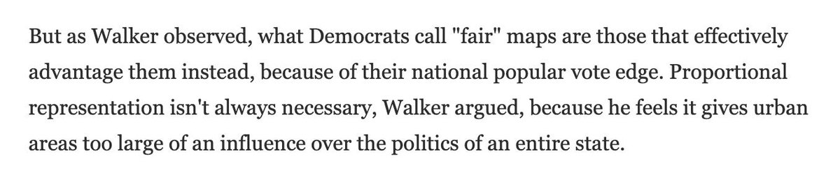 Am I misreading this, or is Scott Walker complaining that Democrats draw "unfair" maps because they have more supporters than Republicans do and so they can redistrict to capture seats reflecting their popularity? npr.org/2019/07/03/737…