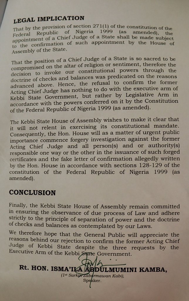 So where precisely did the alleged bigotry of the Governor of Kebbi manifest in this case? Records showed he made every attempts to ensure the Hon Judge emerge even after appointing her in acting capacity. He never knew about her certificate issues until much later.