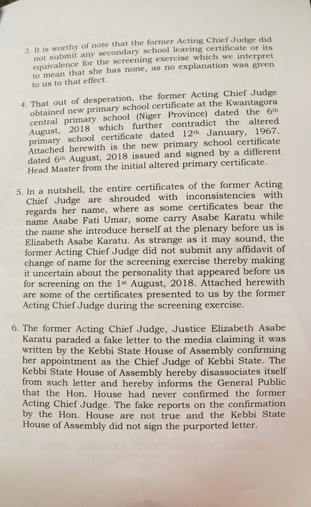 She complicated matters for herself by proceeding to her primary school to obtain a new primary school certificate. This to the Hiuse of Assembly was too much to wave for a Chief Judge.