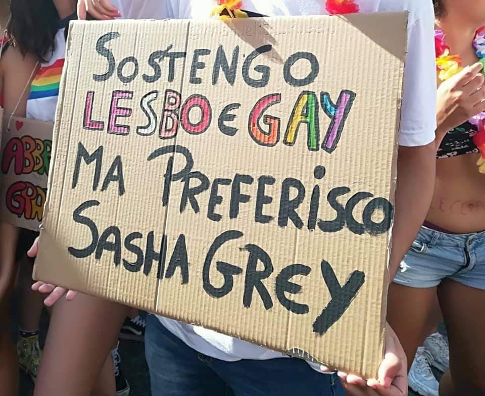 Dall'amore per la patata a Sasha Grey. L'egocentrismo dell'uomo cis etero va fatto a pezzi, partendo dal rifiuto di cartelli simili ai pride. Non sono al #Pride per te, insicuro uomo etero, né per il tuo cazzo o le tue preferenze pornografiche. Fattene una ragione e sparisci