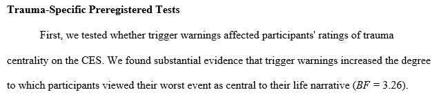 Finally, a preregistered test found that trigger warnings increased survivor's view of their trauma as integral to their identity (this is known as "event centrality"). That's...not good. (5/8)