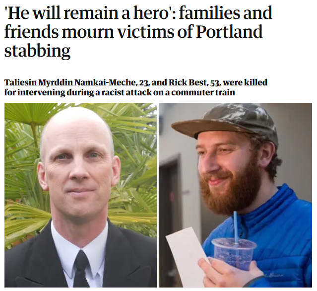 This is deeply concerning. Just two years ago, a white nationalist stabbed three of our neighbors on public transit, killing Ricky John Best and Taliesin Myrddin Namkai-Meche. The victims had tried to stop him from targeting two black girls.