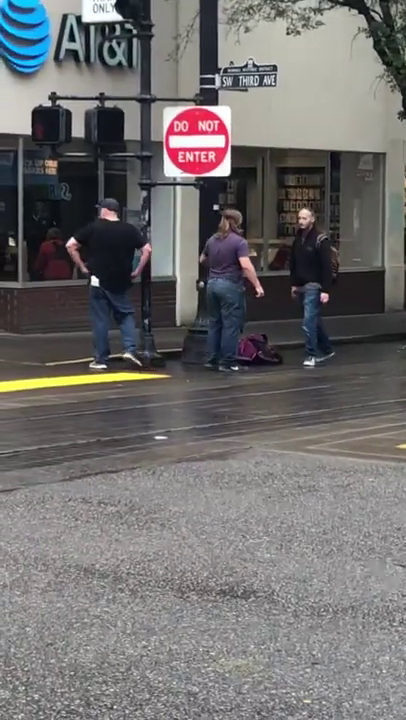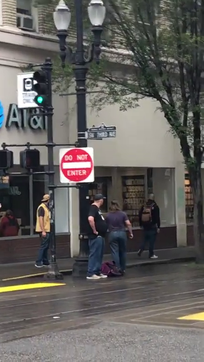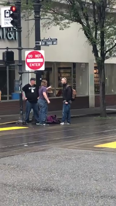 [Thread] Yesterday in downtown Portland, a white nationalist brandished a knife and assaulted a group of young civil rights activists gathered to demonstrate opposition to ICE’s treatment of immigrants and asylum seekers. "Go to another fucking country," he said.