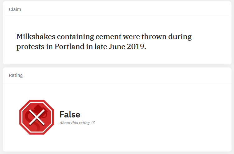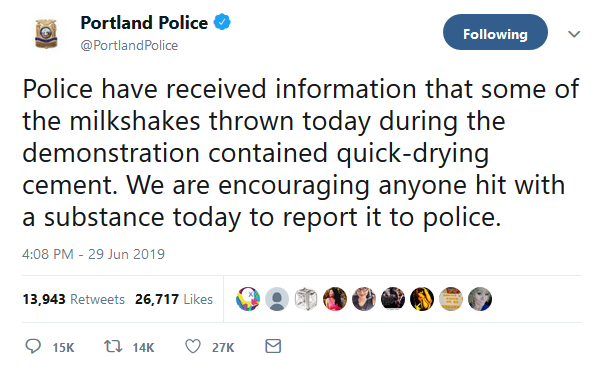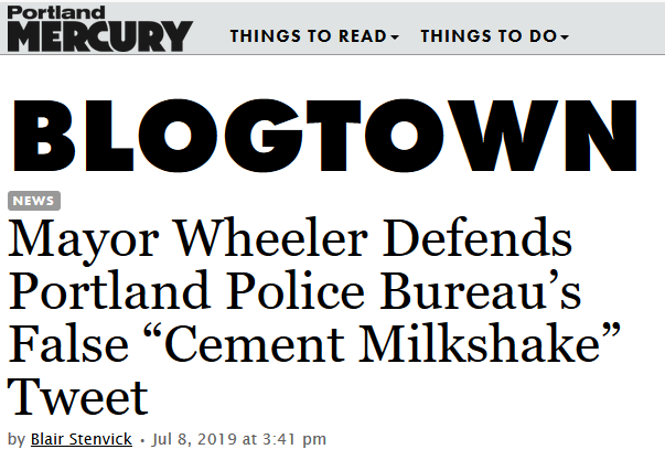 Authoritarian groups and anti-democratic militias are taking aim at Portland, using false narratives to justify attacks. It’s time for @PortlandPolice to either retract or confirm its widely-shared and unsubstantiated claim that anti-fascists made concrete milkshakes on June 29.