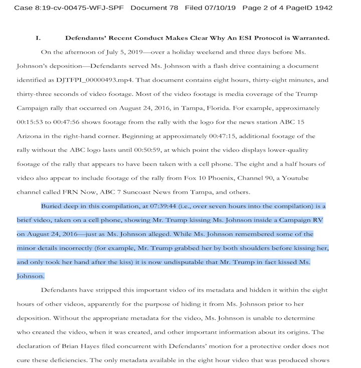 "It is now undisputable that Mr. Trump in fact kissed Ms. Johnson."