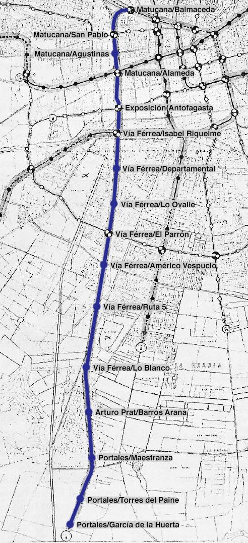 @metrodesantiago La Línea 8 del proyecto de Juan Parrochia pensaba que fuera paralela a la Línea 1 en el sector poniente, yendo por distintas calles pequeñas para terminar atravesando el Club Hípico y el Parque O'Higgins, y finalmente empalmar con la L3 cerca de la actual estación Matta.