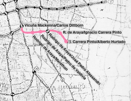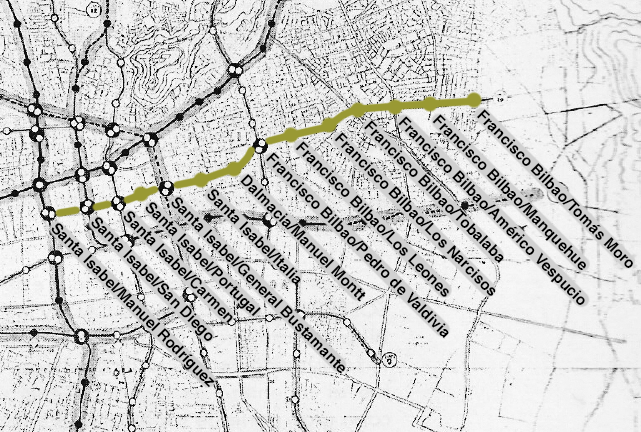 @metrodesantiago La Línea 10 que pensaba Juan Parrochia se parecía bastante a lo que se ha dicho en los últimos años sobre una hipotética línea por Santa Isabel/Bilbao. El paso de la línea de una avenida a otra se planteaba cruzando por debajo del parque Inés de Suárez.