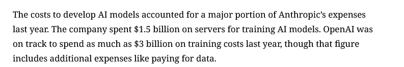 TheInformation reported that Anthropic spend $1.5B in 2024 on servers for training. Zitron's numbers imply $1.3B in total cash spend on AWS by Anthropic. With minimal inference, would mean nearly all the training took place on AWS not GCP.