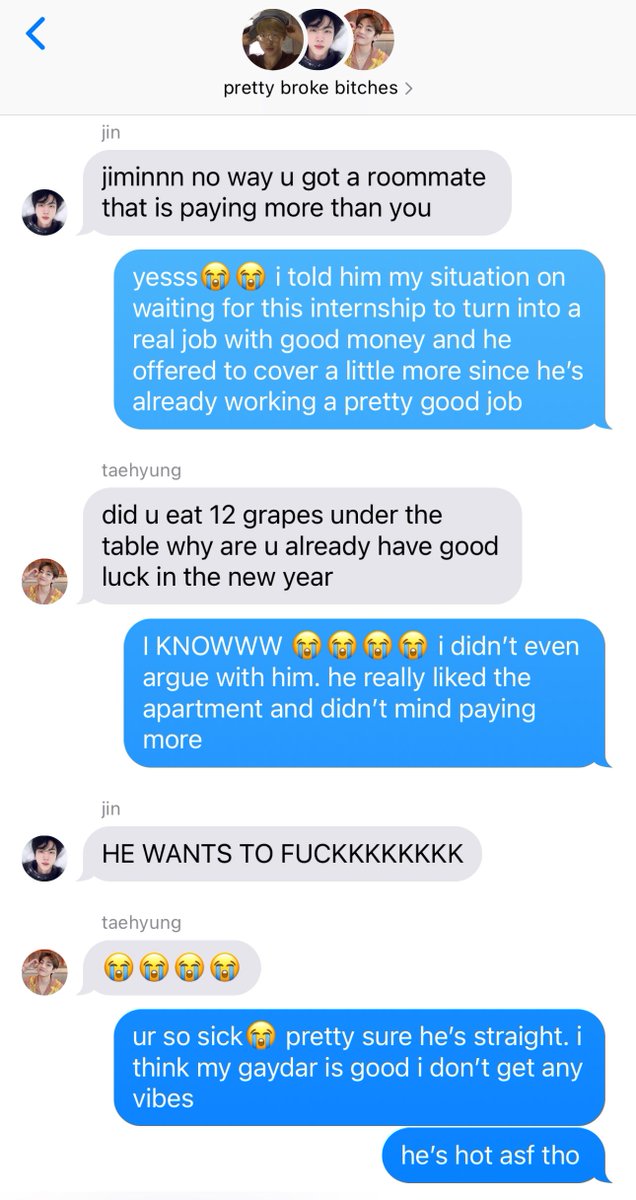 where jm and jk become roommates and everytime jm takes a nap jk, who is straight, gives him a kiss on the forehead. jm starts to realize and fakes sleeping so he can get the kiss