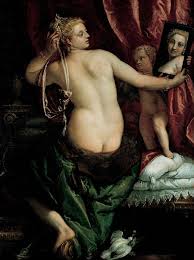 Incluso en obras donde Venus está de espaldas al espectador el artista hace que se gire para mostrarnos el rostro aunque sea una posición artificial. Veronese y su Venus con espejo
