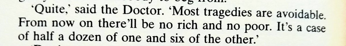 The book ends with the Doctor giving a speech about how the colonists (a few of whom wiped out the natives of the planet) should go expand and settle across that world.