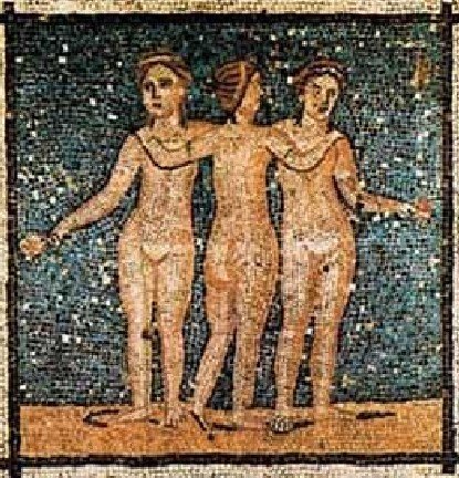 Hoy la revisita le toca a tres mujeres, hijas de Zeus y Eurínome. Aglaya, Eufrósine y Talia o, en español, Belleza, Júbilo y Abundancia