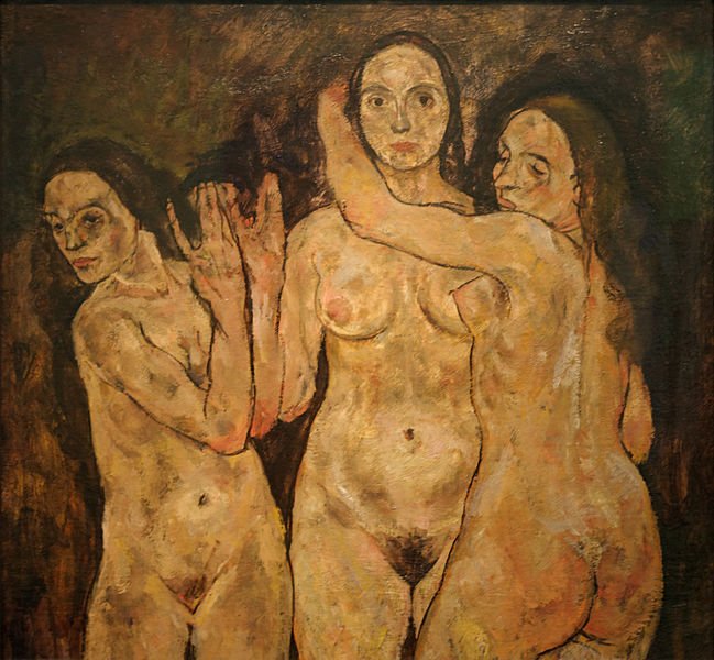 Al igual que hará poco despues Egon Schiele con sus "Tres mujeres en pie"