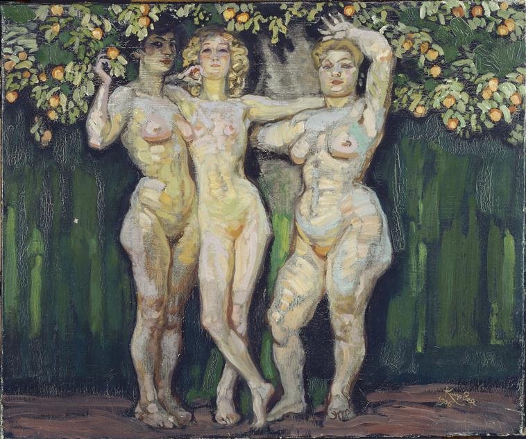 Macke, con su "Three Nudes Against Blue Background"