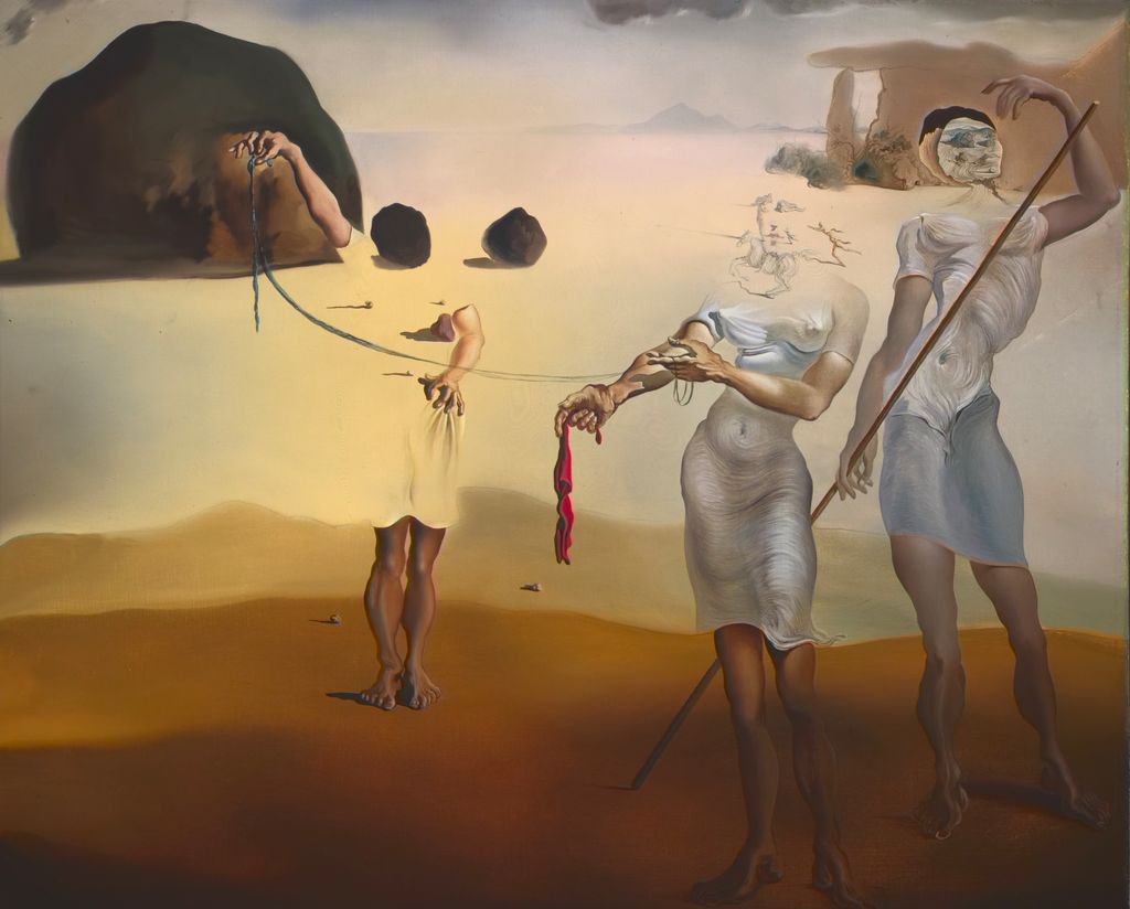 Salvador Dalí con su "Playa encantada con las Tres Gracias Fluídas" de 1938