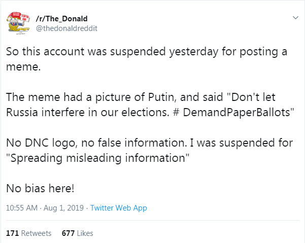Later, the official Twitter account for the subreddit -- which is run by the subreddit's moderators -- tweeted a similar Putin meme & the hashtag. The account said Twitter temporarily suspended the account due to it, & a moderator on the subreddit directly mentioned the tweet.