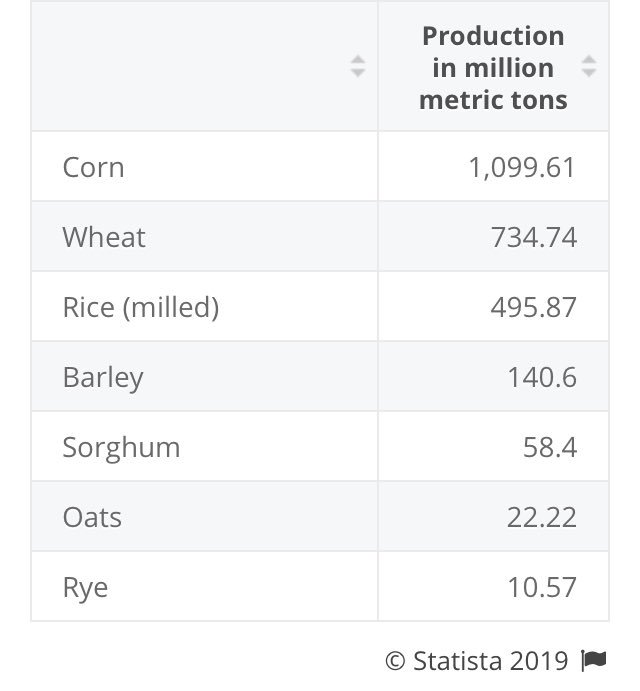 2) El maíz es el principal grano producido en el mundo, pero también es el que más tecnificado está y el que más volumen aporta por hectárea