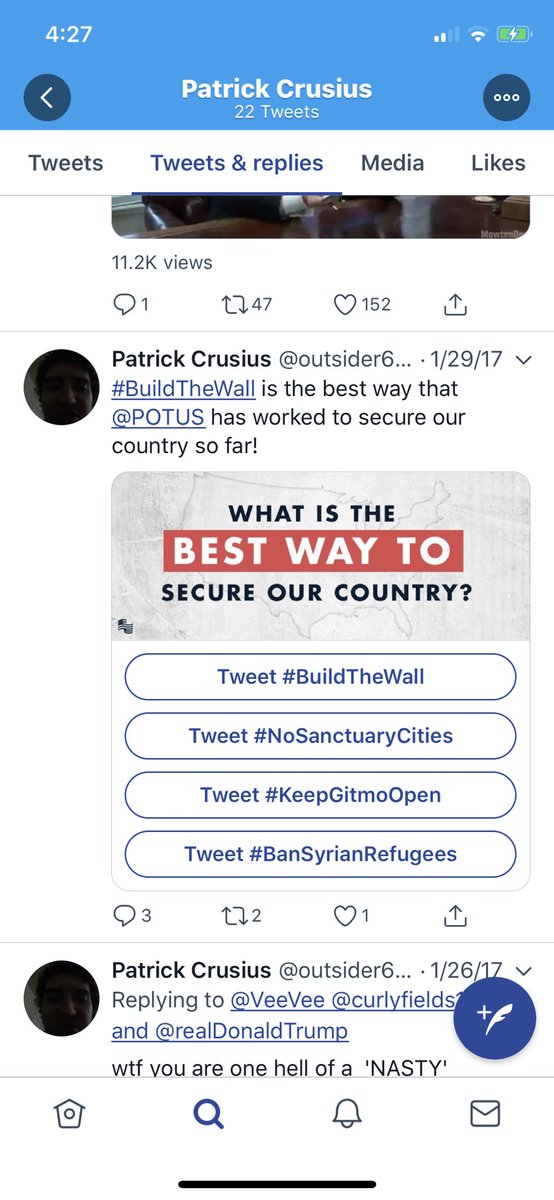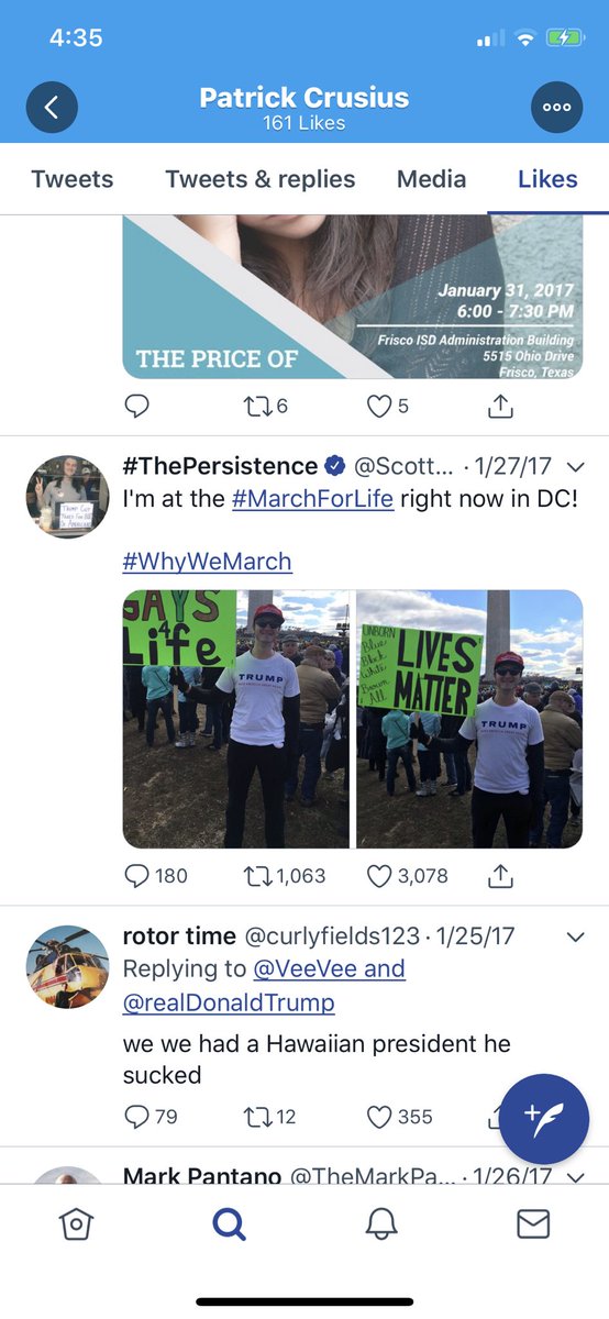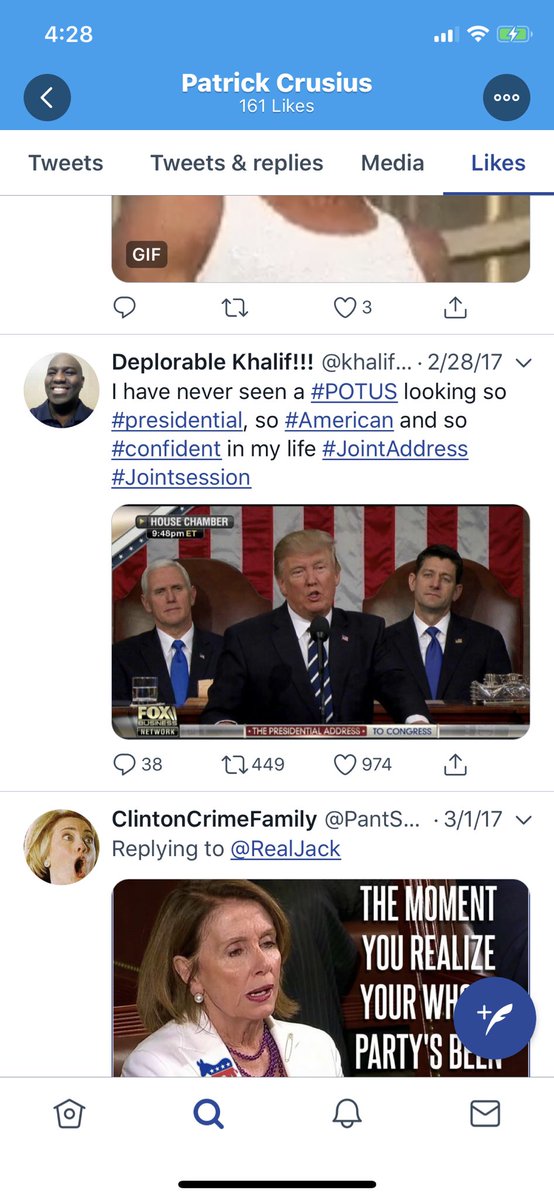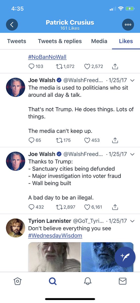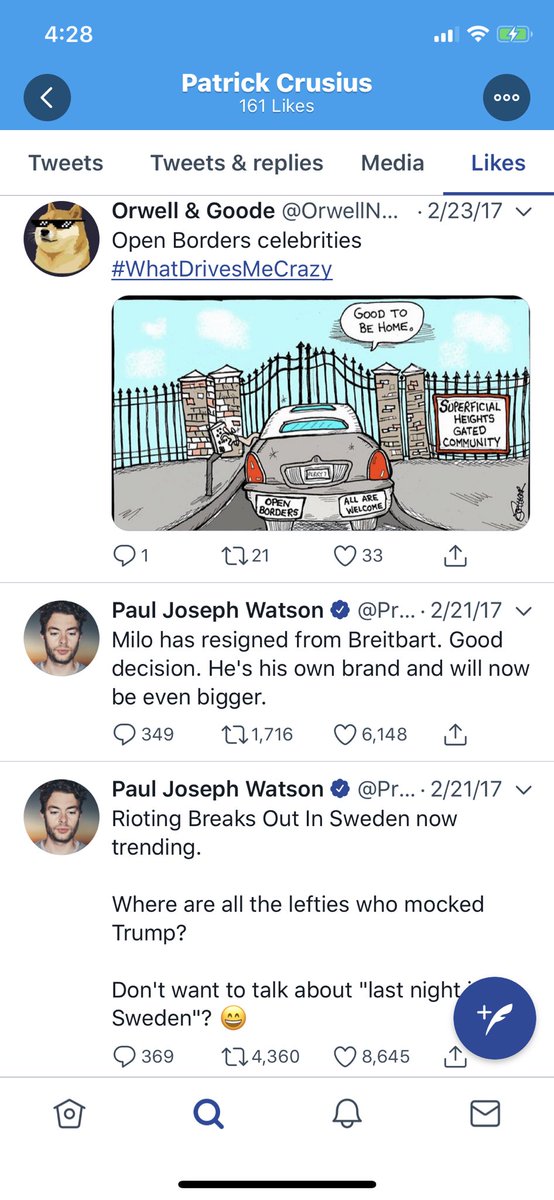 You still don’t think these right wing twitter personalities are dangerous? The Persistance and Prison Planet make an appearance in his likes. Also, Joe Walsh, back when he was pro-Trump, and just spent his time tweeting about immigrants and Muslims