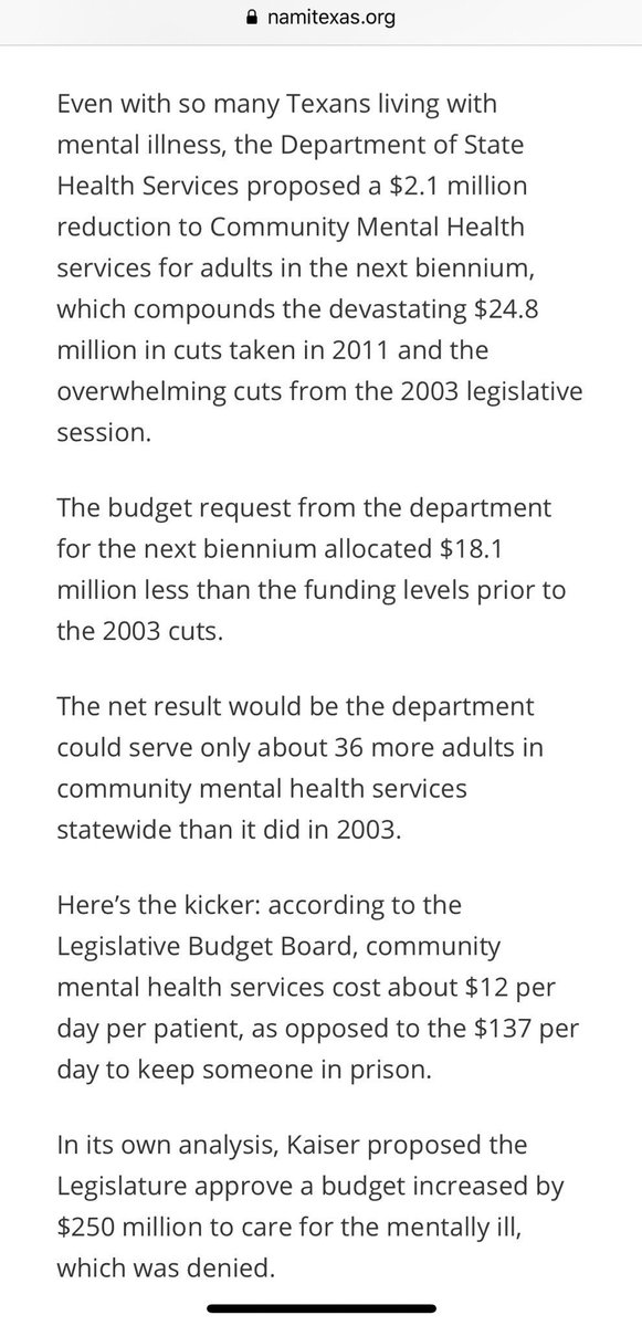 Republicans have controlled TX government for 24 years and the result is a state mental healthcare system in shambles and a prison for profit pipeline. They have zero credibility on this issue and should be denounced for suggesting otherwise. dallasnews.com/opinion/editor…