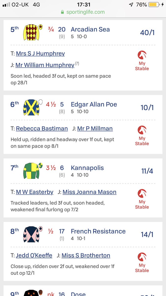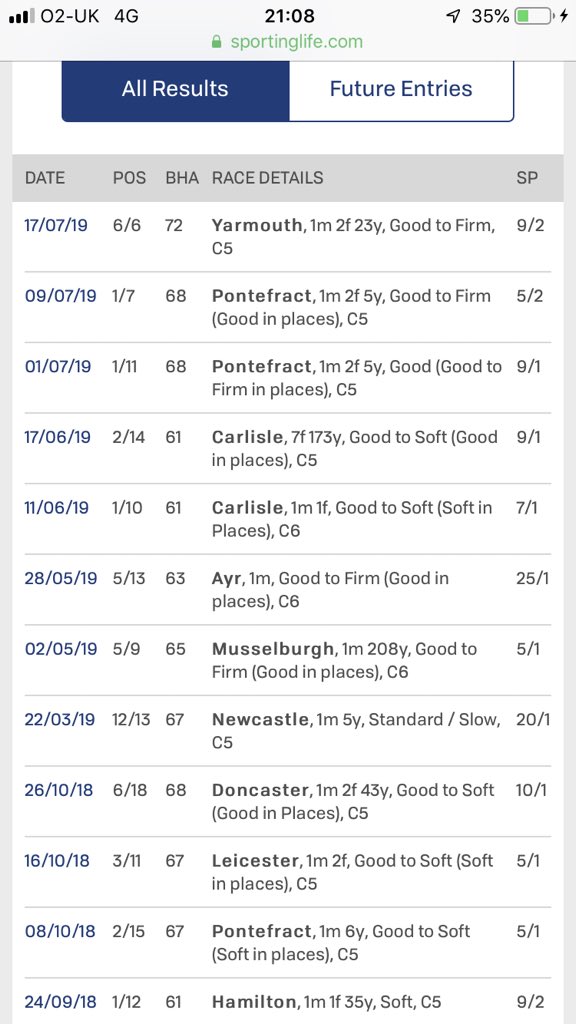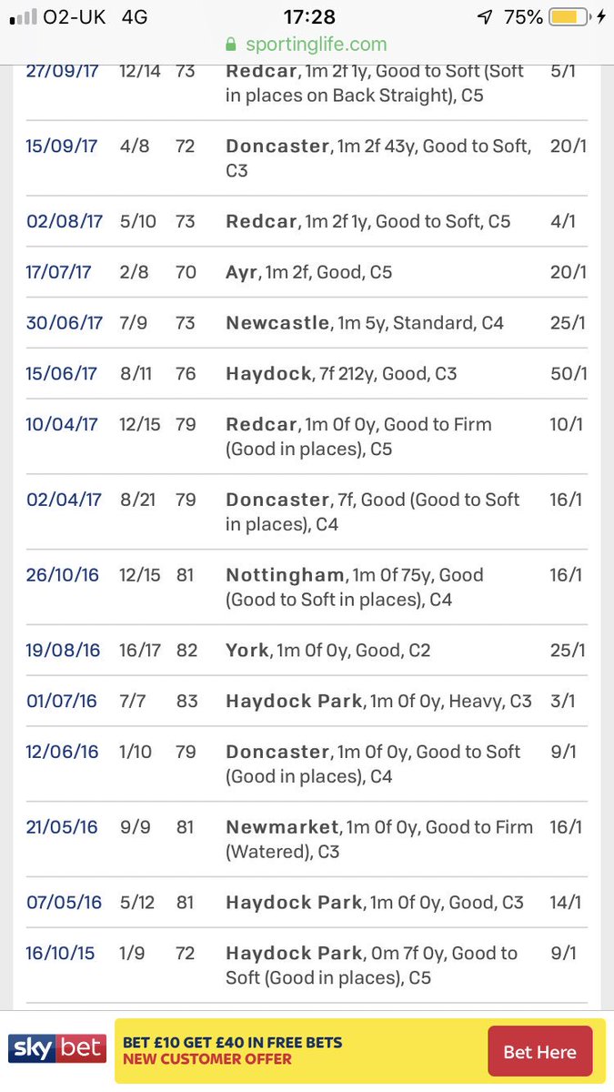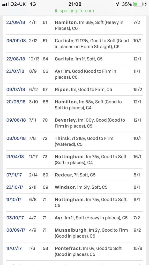 Was then last of 6 off of 72 (was well in as no penalty for the win off of 73) and a quick check shows it just ran poorly. I’ve seen enough. Quick check of trainer form and jockey form (both had winners recently).