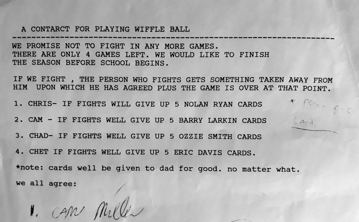 You see, Wiffleball became not just something to do in between little league games, but a lifestyle. From 1985-1991, it was serious business. We even had contracts like this example from 1990.