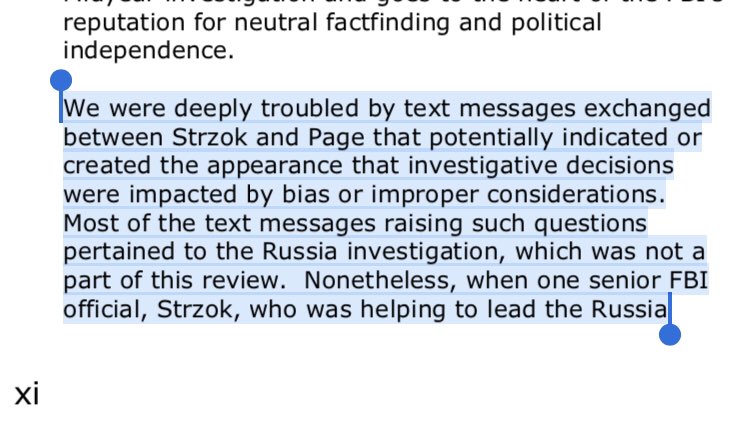 MOST of the text messages raising such questions PERTAINED to the Russia investigation, which was NOT a part of this review. Nonetheless, when one senior FBI official, Strzok, who was helping to lead the Russia investigation at the time, conveys in a text message to another...