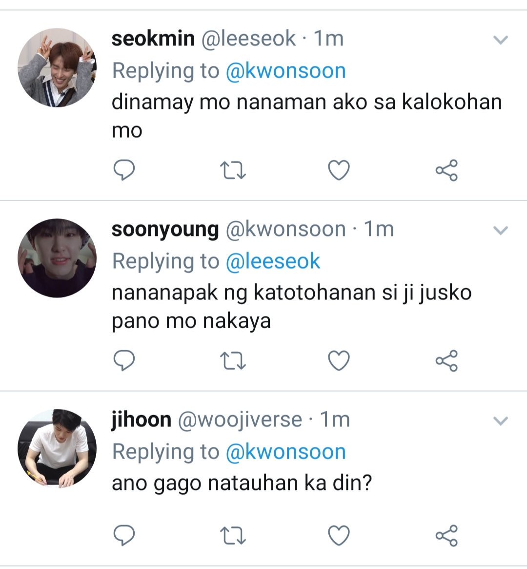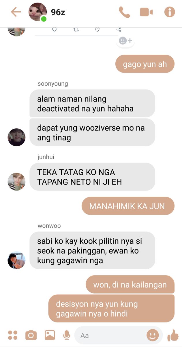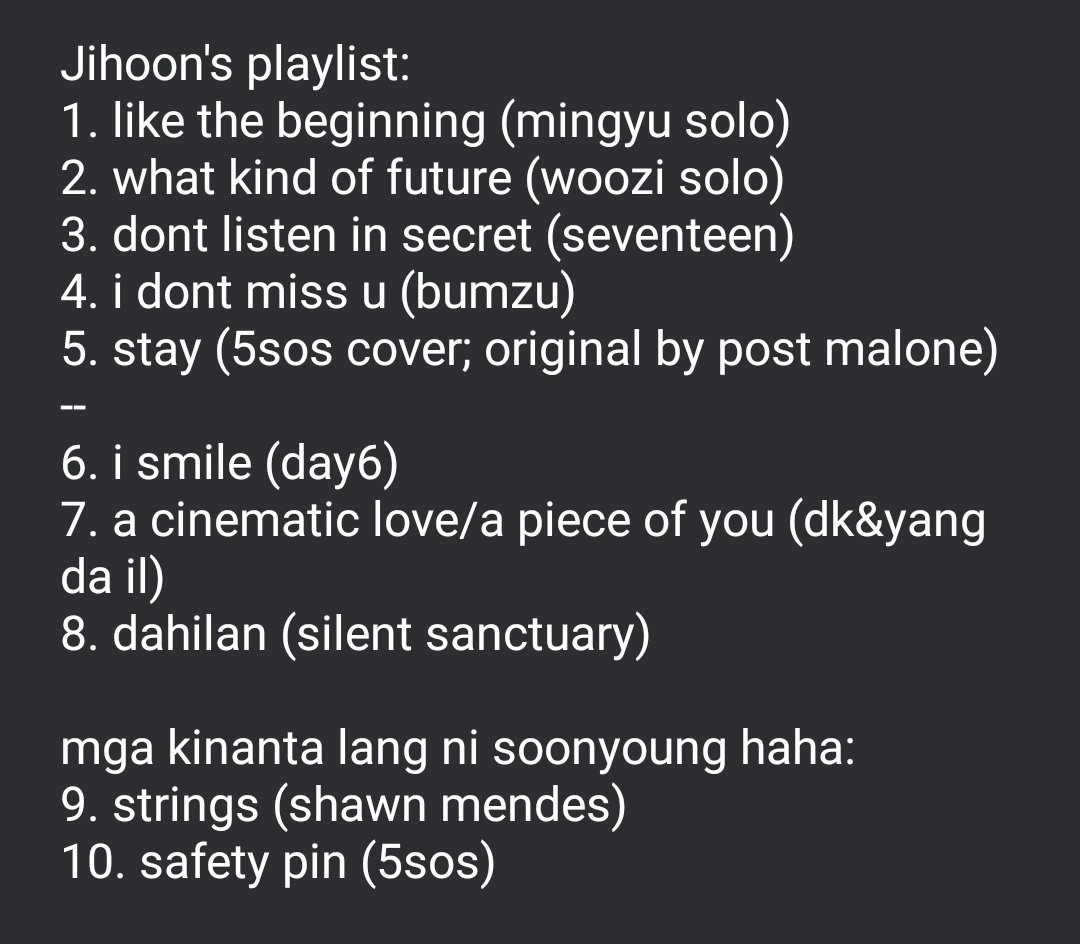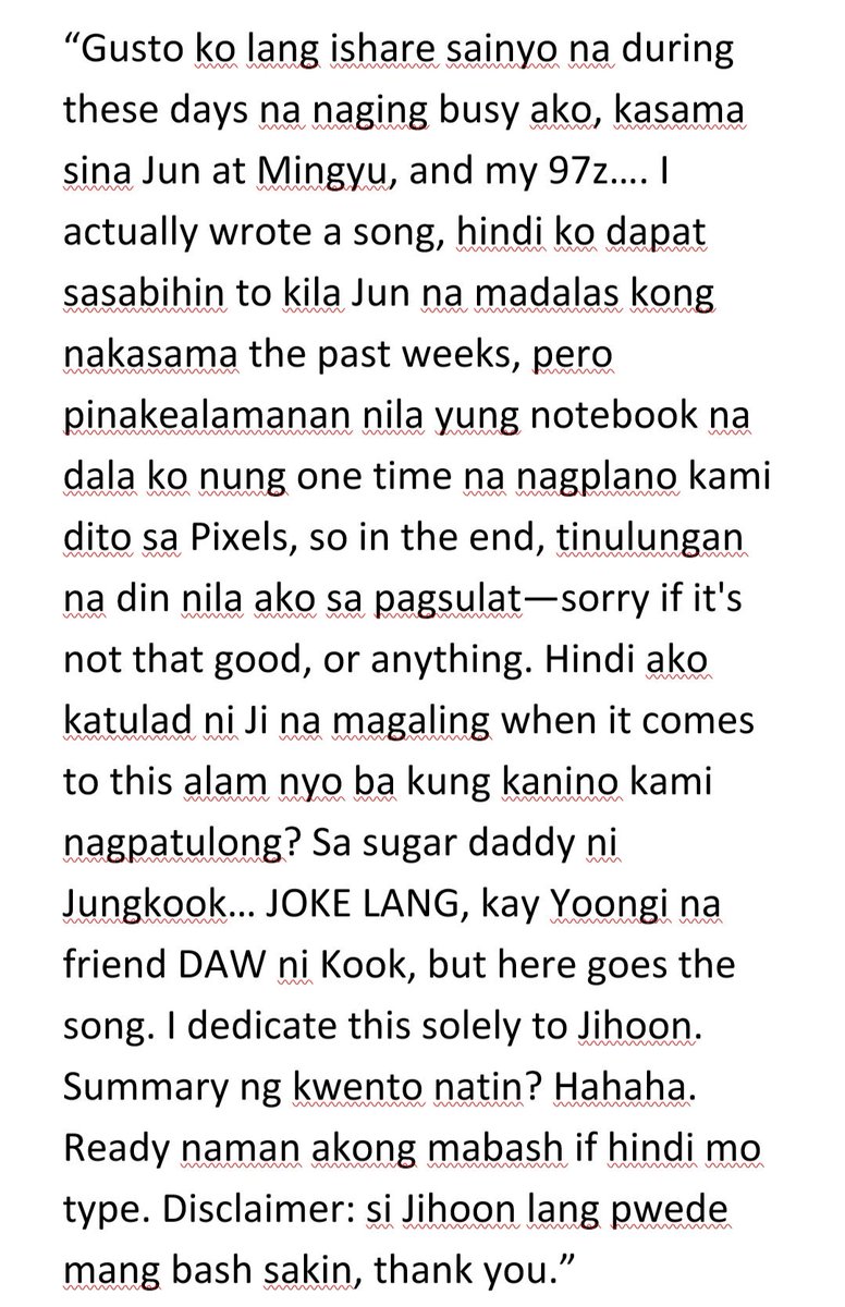 lee jihoon - video production major, sa pinas nag aaral, masipag, nagsusulat din sya ng kanta pag may time, kumakanta din syempre