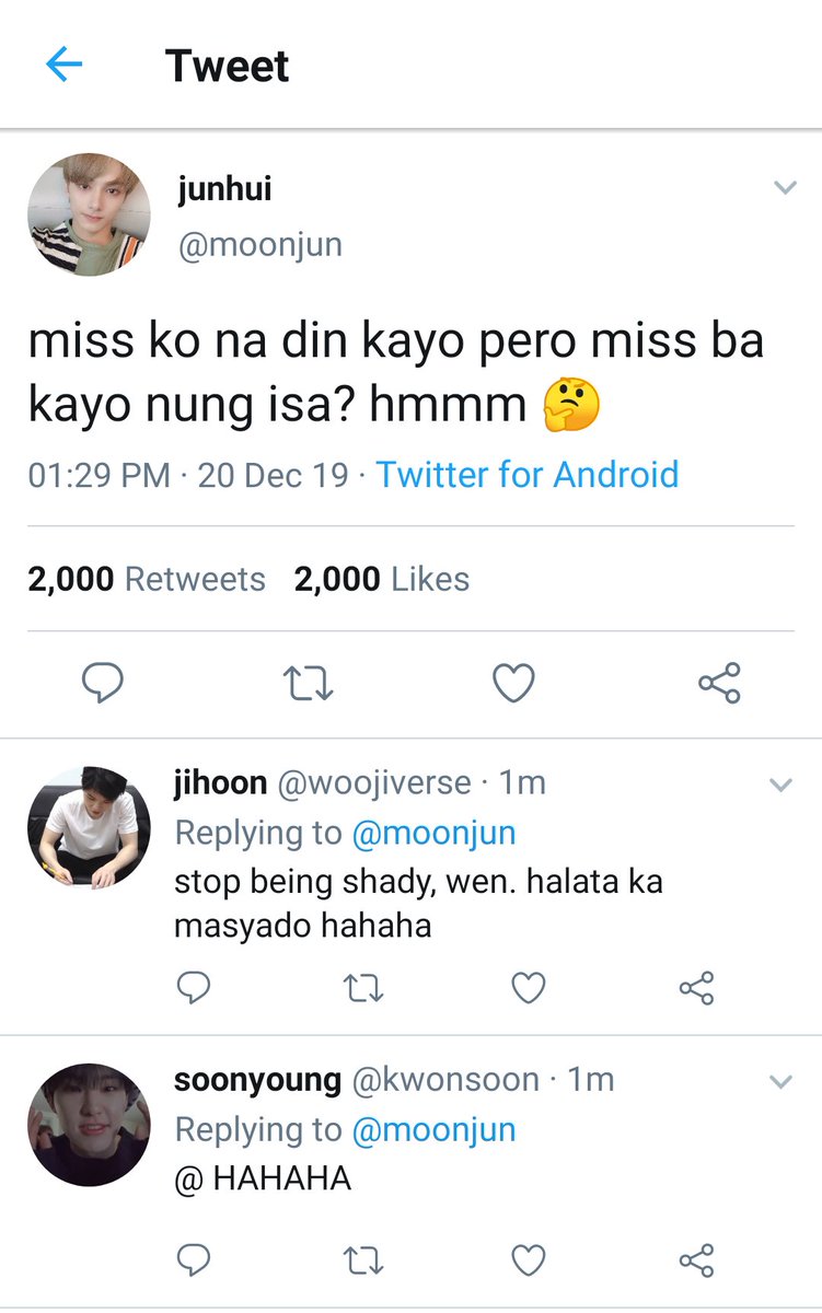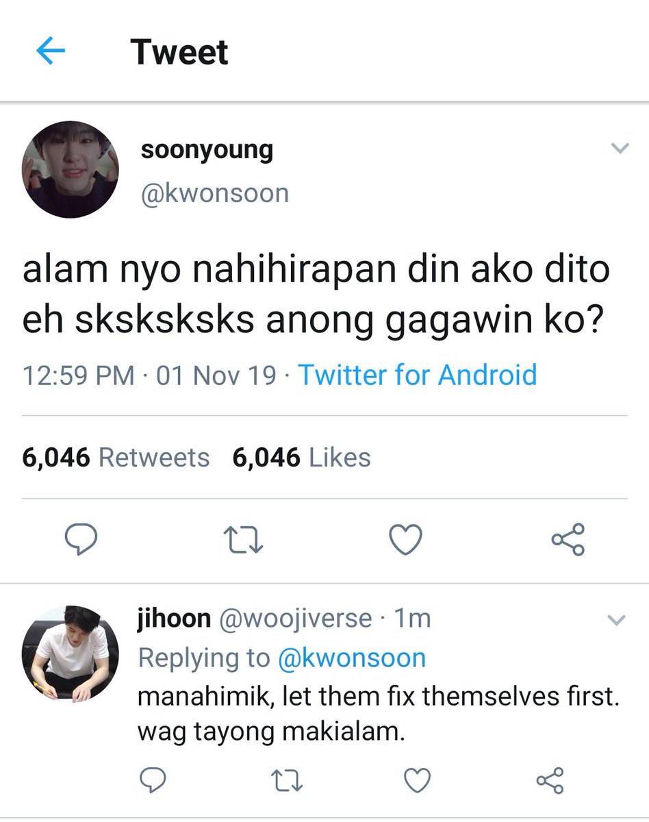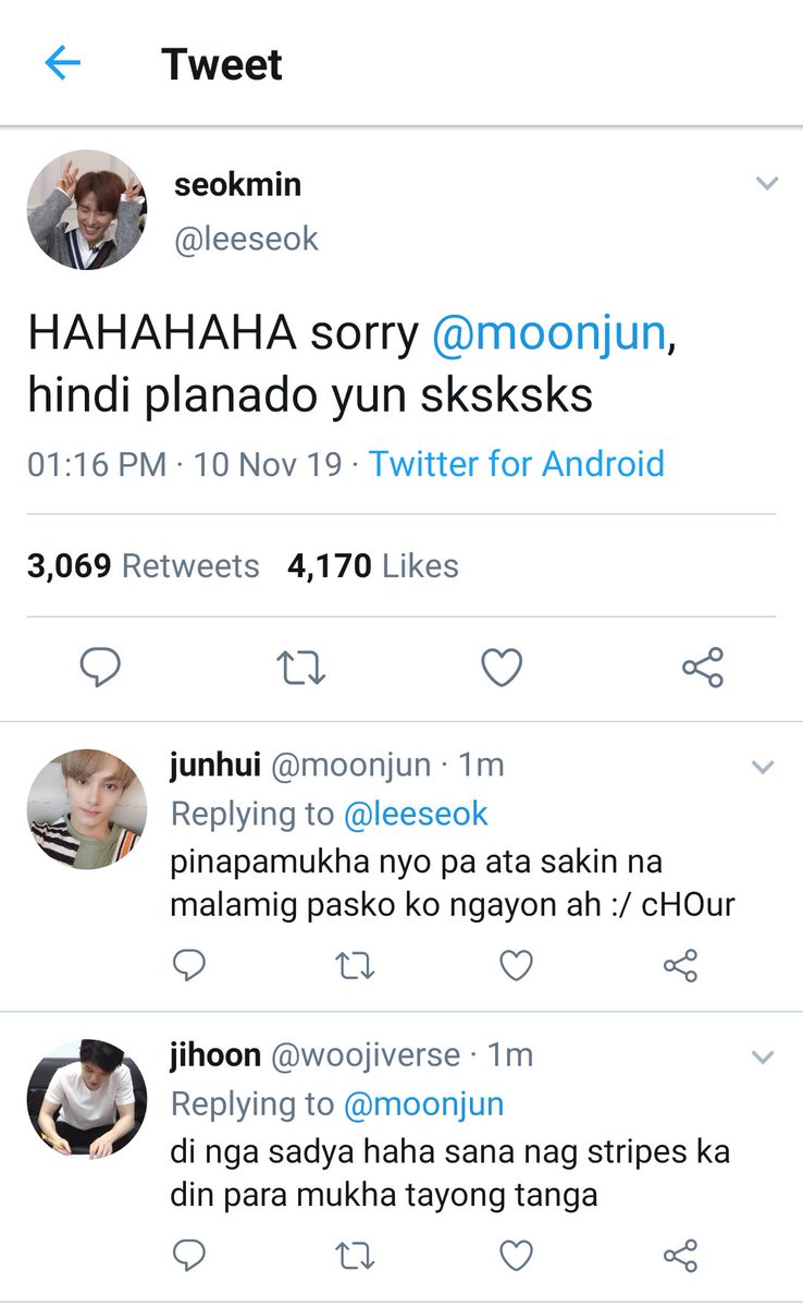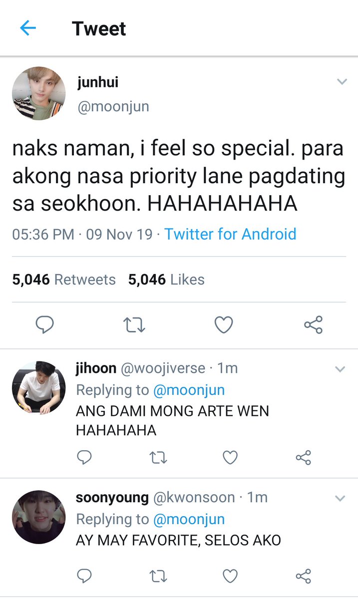 lee jihoon - video production major, sa pinas nag aaral, masipag, nagsusulat din sya ng kanta pag may time, kumakanta din syempre