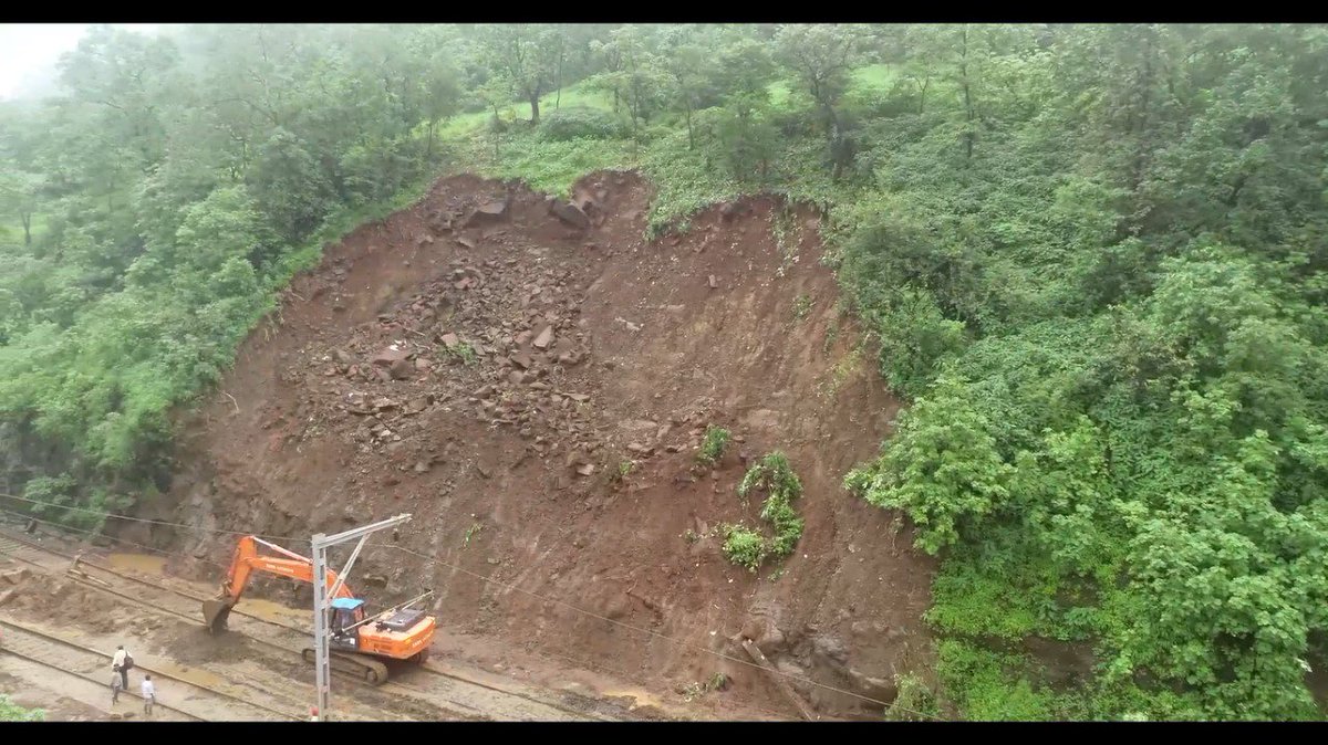 This is why the Mumbai-Pune line is still down. Holes in tunnel due to boulder falls & landslides, displaced tracks and broken overhead wire poles. @Central_Railway teams working 24x7 to get back line on track (1/n)