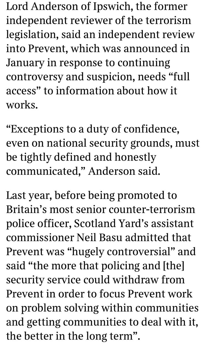 Whatever the truth behind this thetimes.co.uk/article/cf1c17… (£) - the comments attributed to a “senior Home Office official” are certainly troubling - it underlines the importance of the independent review of #Prevent whose details are to be announced tomorrow.