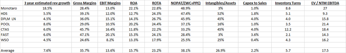 I looked at most in here, some I excluded because they didn't look enough like a distributor to be fair comparison. Names like GWW, MSM, SYY, ORLY, CDW didn't make the cut.