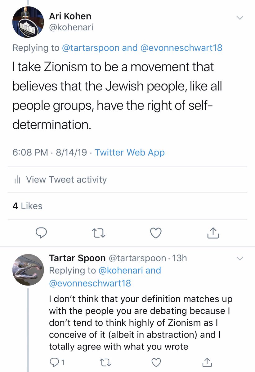 In response, since I opposed the claim of this tweet, someone asked me for my definition of Zionism. I provided it.