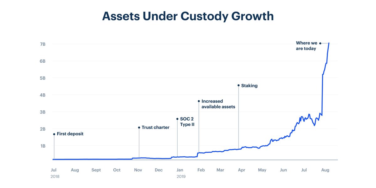2/ At just over 1-year old, Coinbase Custody has grown to over $7 billion in Assets Under Custody (AUC) from over 100 clients in 14 different countries.
