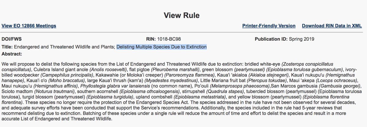The list is incomplete but it is growing. This spring, the Fish and Wildlife Service prepared to remove 23 additional species from the Endangered Species Act. The reason? They have gone extinct, and are no longer in need of protection. washingtonpost.com/business/2019/…