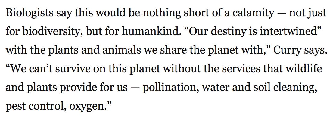Across the world the species extinction rate is currently tens, perhaps *hundreds* of times greater than the normal rate. It is accelerating. washingtonpost.com/business/2019/…