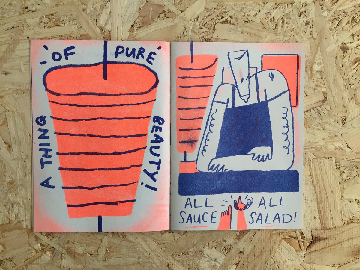 11. Döner Daze, by @davidjmc_ , printed by Assembly Press. A love letter to kebabs, and a subject close to my own heart. (We did in fact do a Döner Daze - Dog Days zine swap)