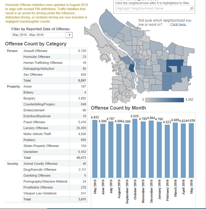 For our reference point, we will use May '15-'16 -- the first full year the city adjusted stats to be more in line with FBI standards. Prior years may log crimes diff.