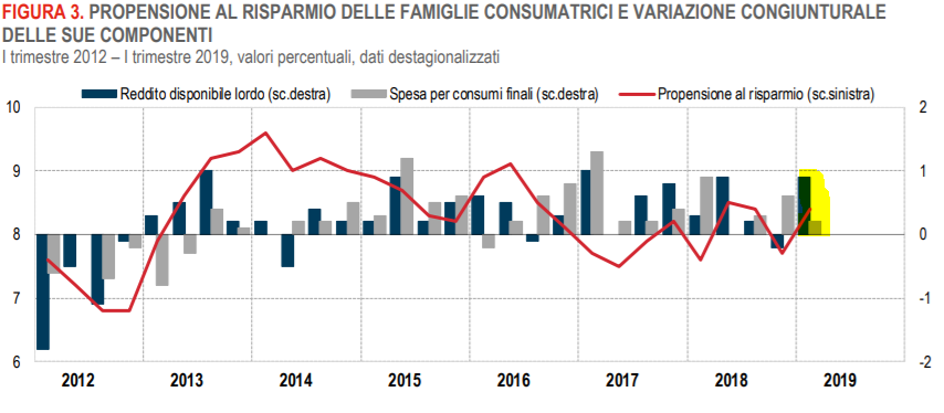 Oppure serve far notare che quel modesto aumento di reddito disponibile finisce perlopiù in risparmi anziché in consumi?