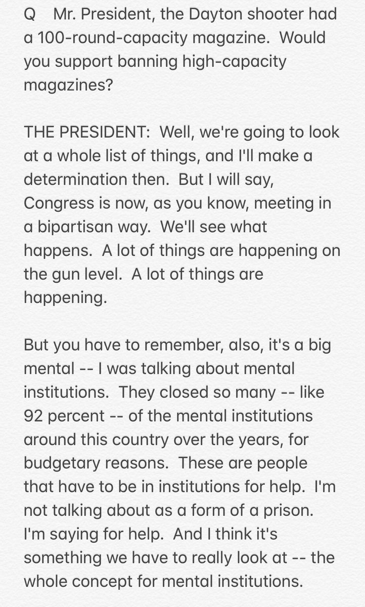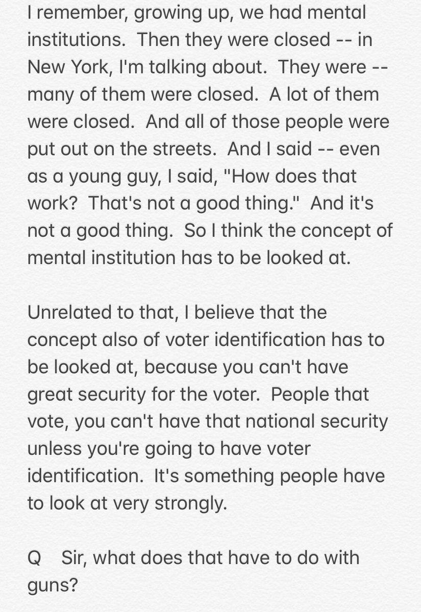 Asked today about banning high-capacity magazines, Trump ended up talking about “the concept of mental institution” and “the concept also of voter identification”: