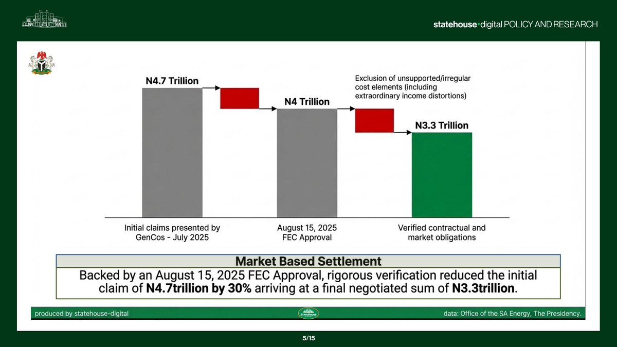 Between 2015 and 2025, the sector accumulated approximately ₦4.7 trillion in claims across the electricity value chain. Following a Presidential stakeholder meeting in July 2025 where the claims of N4.7trillion were presented, a thorough review was recommended by President Bola Tinubu. On August 15, 2025, a ₦4 trillion fiscal cap was approved by the Federal Executive Council following which a comprehensive verification process was undertaken to verify claims.