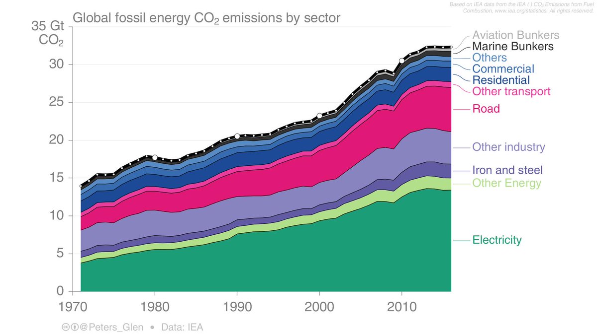 Solutions are most obvious for electricity, but don't forget many in the world need more electricity to improve their lives & that will put pressure on emissions growth...