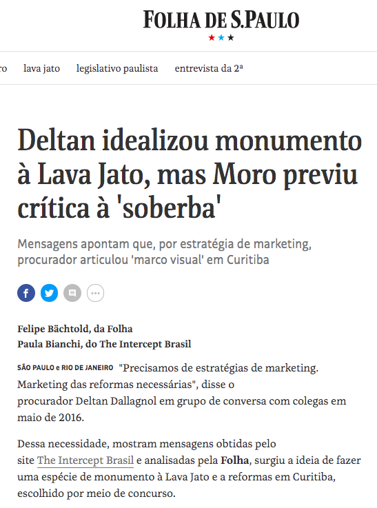 O que quer que você pense sobre as fantasias de Deltan sobre a construção de um monumento público para seu próprio trabalho, o novo #VazaJato na @Folha mostra - mais uma vez - uma peça fundamental da corrupção central em LJ:
