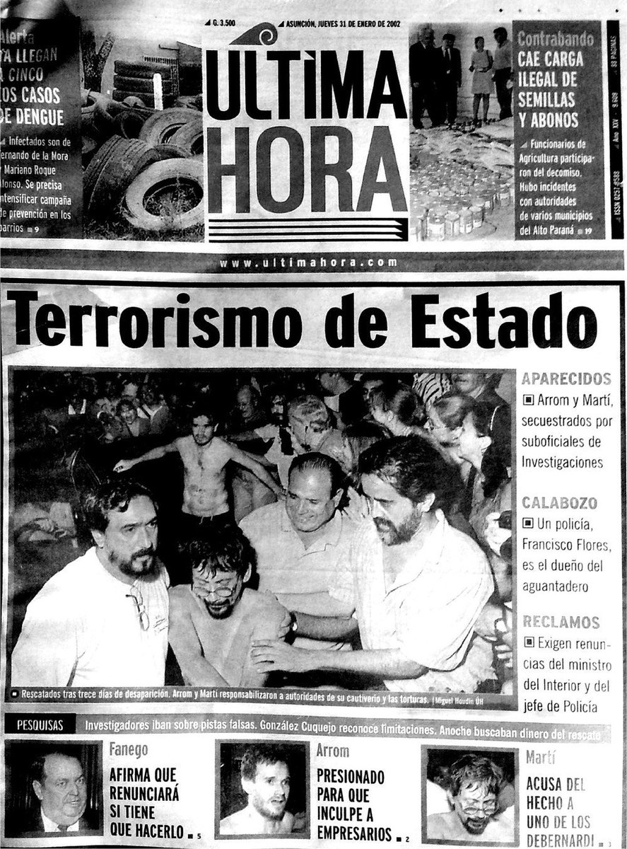 3. Arrom, Martí e Colmán são acusados pelo governo do Paraguai de, em 2002, terem sequestrado Maria Edith de Debernardi, nora de um ex-diretor de Itaipu.