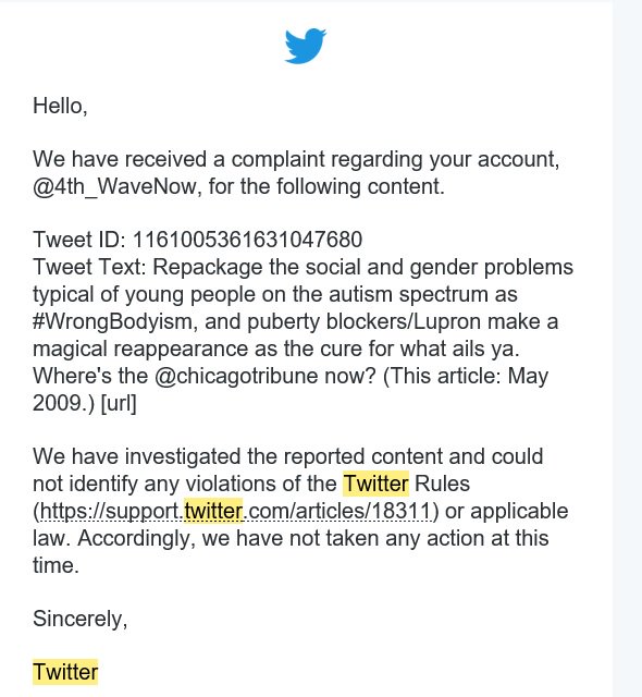 "They" also didn't like us pointing out that 10 years ago, the Chicago Tribune reported on quacks who claimed they could cure childhood autism with Lupron. We wondered why @chicagotribune didn't report on autistic kids getting the same drug now--but for gender dysphoria.