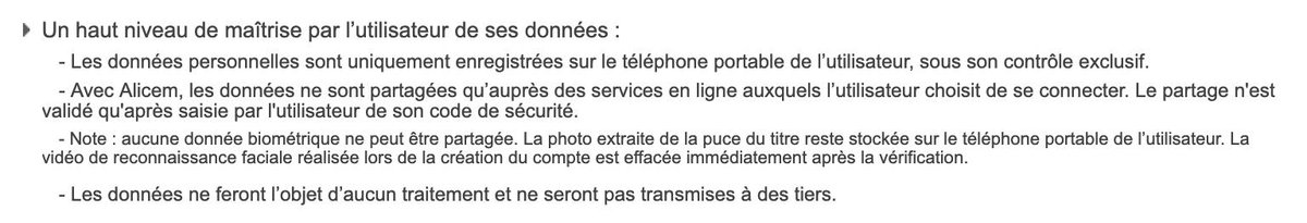 Le paragraphe sur les données et une blague à lui tout seul: « aucune donnée biométrique ne peut être partagée » et juste après « La vidéo de reconnaissance faciale [...] est effacée immédiatement après la vérification »